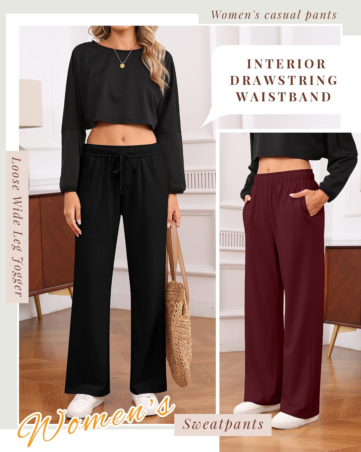 Features: 3-Pack for easy rotation: Includes wide leg, straight leg, and baggy sweatpants for women-always a fresh pair. Women's drawstring sweatpants for consistent comfort. Skin-friendly fabric: 95% Polyester, 5% Spandex makes these women's sweatpants breathable, stretchy. Baggy/jogger styles keep you comfy active or at rest. Specifications: Material: 95% Polyester, 5% Spandex Size: from S to 2XL Package includes: 3 pack womens wide leg sweatpants Notes: Manual measurement, please allow slight errors on size. The color may exist a slight difference due to different screen displays