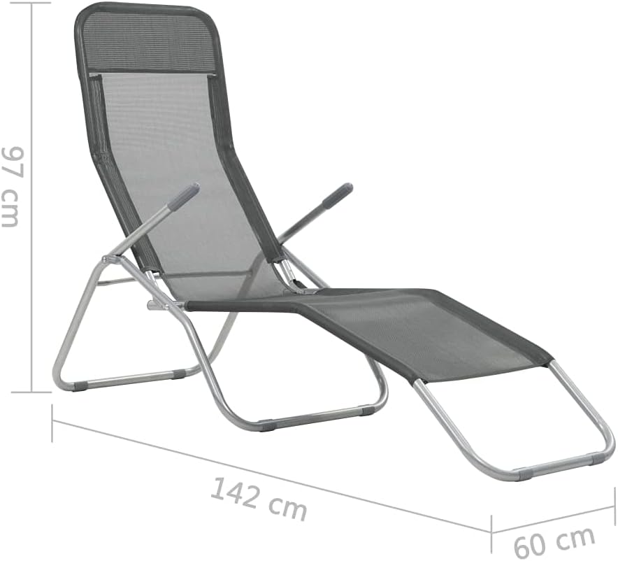 Our folding sun lounger set will be a choice for relaxing and enjoying a day in the garden or on the beach.These sun beds have a sturdy frame made of powder-coated steel. The seat and backrest are made of breathable, extra-strong textilene fabric. The backrest is adjustable, allowing you to lie down as comfortably as you want. Thanks to the swing frame design, this beach chair set can be easily folded away for storage and transport.Delivery includes 2 sunloungers.Color: RedMaterial: Powder-coated steel + Textilene fabricDimensions: 55.9" x 23.6" x 38.2" (L x W x H)Load capacity: 264.6 lbsAdjustable backrestDelivery includes 2 sun loungersFabric: Polyester: 30%, PVC: 70%