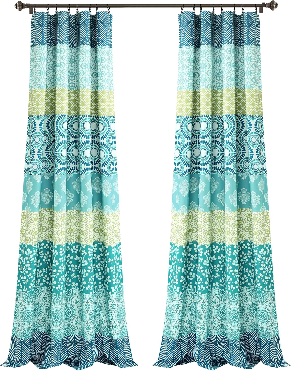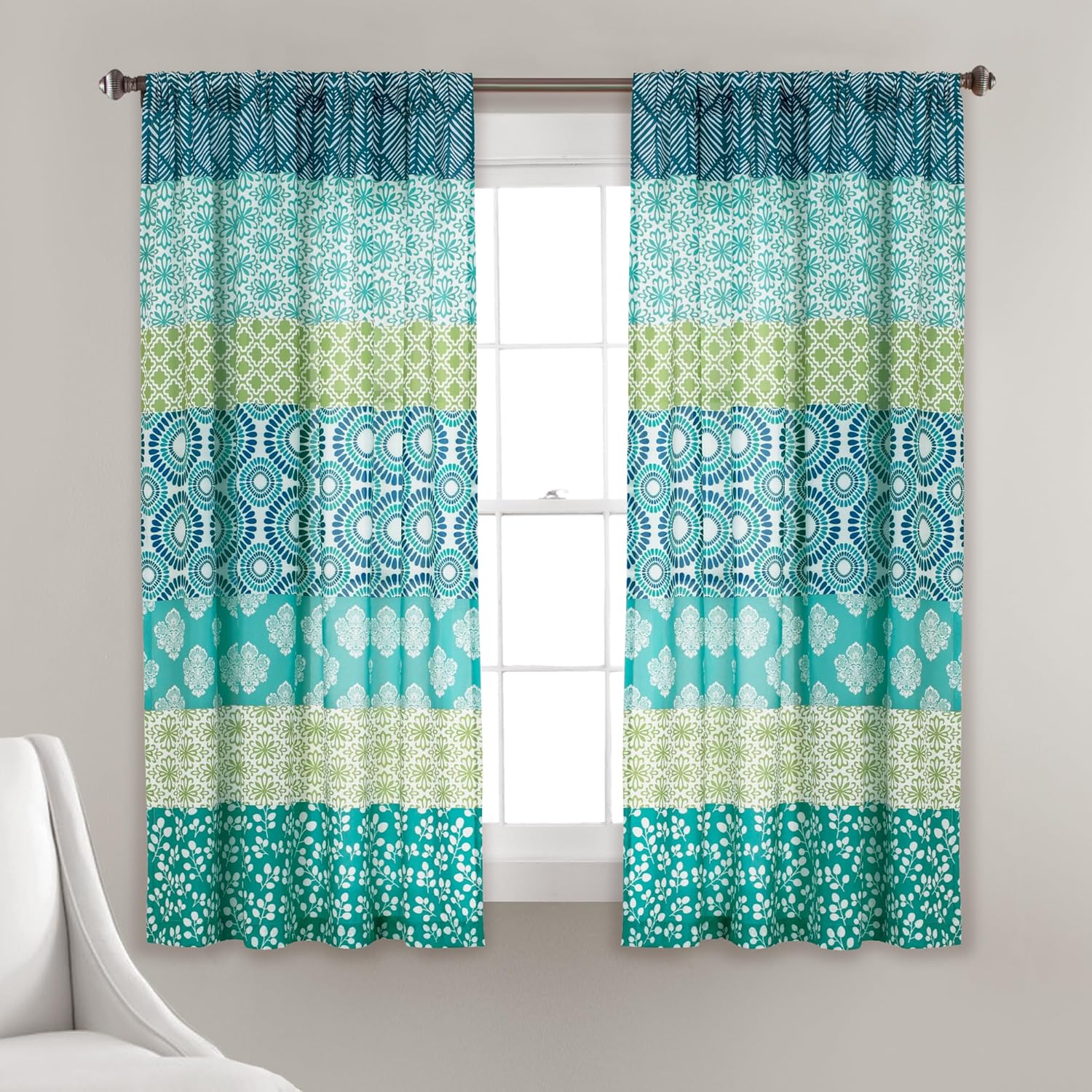 Wake up your home decor with the Bohemian Stripe Window Curtain Panel Set. These striped curtains feature a symphony of artistic patterns and a kaleidoscope of exquisite hues, unveiling a myriad decorative prints. With its classic medallion motifs, gentle botanical prints and mesmerizing geometric patterns, the printed patchwork is a boho tapestry of stories waiting to be told. These maximalist curtains not only provide privacy, but help to filter sunlight, allowing a soft glow to fill the room. Use maximalist decor to make a statement by adding these bold, globally inspired patterned curtains. Sold as a pair, each individual panel measures 52 inches wide and is available in multiple length options. These light filtering curtains offers seamless installation with a 3" rod pocket, allowing you to easily slide it onto your curtain rod or using clip rings (not included). These curtains for bedroom look great in maximalist or boho decor styles, even as curtains for living room. Caring for these window curtains is easy, simply machine wash cold on the gentle cycle and tumble dry low for a quick refresh. If needed, use a non-chlorine bleach for cleaning or a steamer to release wrinkles.