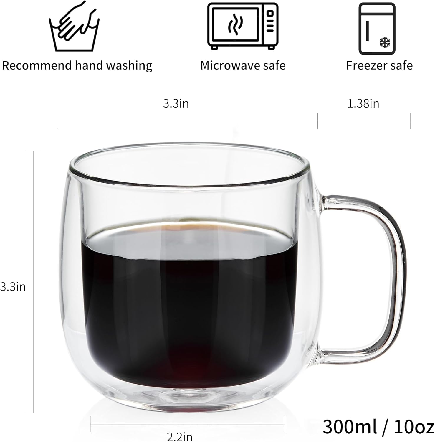 • Double Walled Insulated Design: The double walled design keeps hot longer while the exterior wall stays cool for hand safe touch.